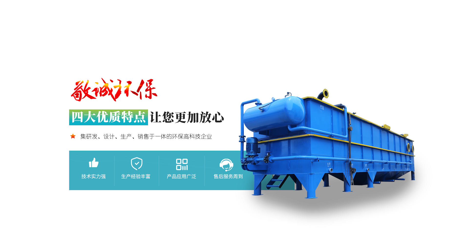 公司本著“以質量求生存,以信譽求發展”的經營理念,制造環保精品,為環保事業的發展與開拓創新竭誠服務。公司主要生產:一體化污水處理設備